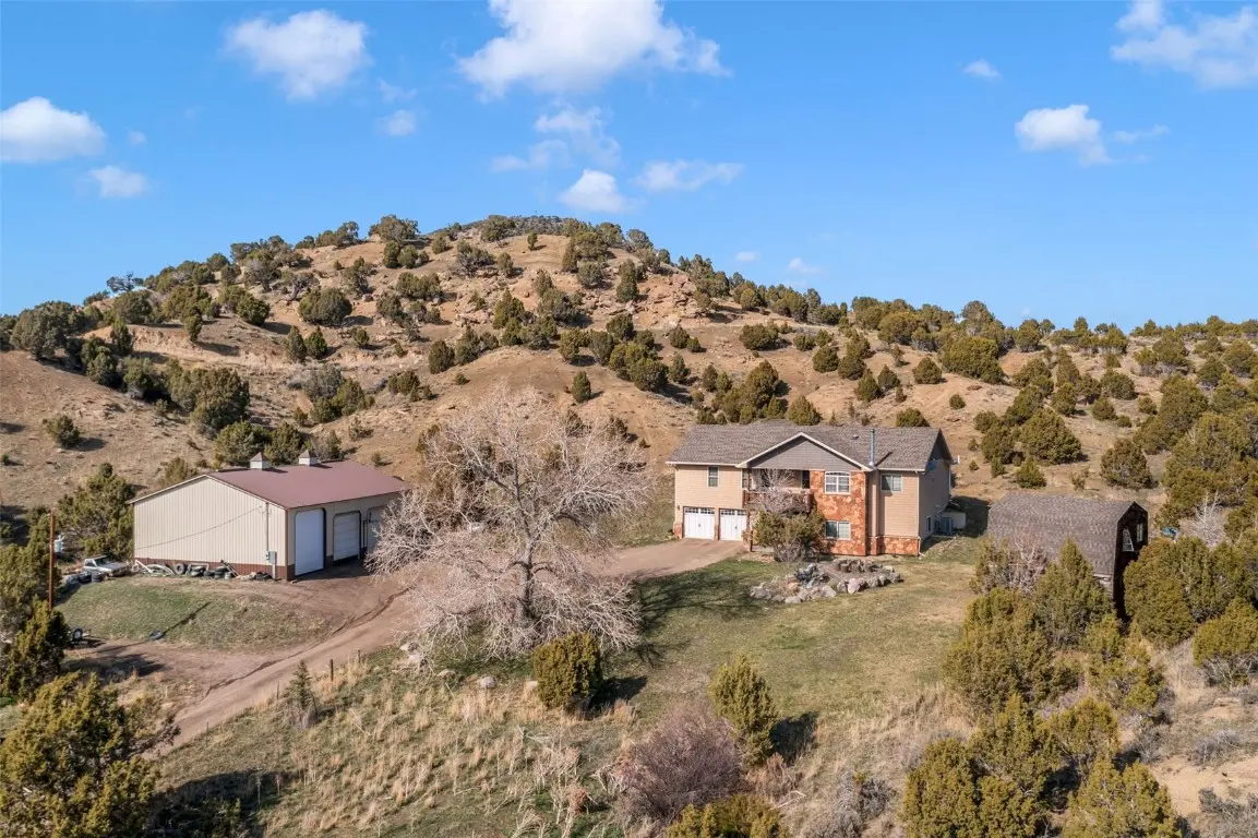 Location, Location, Location! Privacy, Trees & Custom Craftsmanship. 3.5 miles from town you'll find this stunning home with paved access. This custom home sits on 10 secluded acres and offers the perfect blend of convenience, privacy, and luxury. Nestled among scattered Cedar trees in a peaceful setting, this property is a true gem with breathtaking views and meticulous landscaping, including a sprinkler system for easy maintenance. Crafted with care and attention to detail, the home features log, wood, and stone accents throughout, combining rustic charm with high-end finishes. The maintenance-free exterior, accent lighting, and hot tub on the spacious deck make outdoor living a dream. Step inside to find stunning knotty pine interior walls, custom stonework, a beautiful fireplace (with 2 custom stoves & a pellet stove you will stay plenty warm), vaulted ceilings, and hardwood floors. The chef's kitchen boasts Hickory cabinets, slab granite countertops, and is perfect for entertaining or family meals. With 4 bedrooms plus an office, there's plenty of space to spread out and enjoy. Stay comfortable year-round with central air and enjoy the convenience of being on a well—no hauling water here! In addition to the oversized 2-car garage, the property includes a massive 40x56 shop and a two-story barn, ideal for storage, hobbies, or animals. This property is absolutely stunning, and its serene setting and premium craftsmanship truly set it apart. If you're looking for privacy, amazing views, and a custom home just minutes from town—this is it. Are you looking for more acreage and a barn? 3572 County Road 7 (MLS#: S1059455) is close by and available to purchase! Owners would look at a package deal.