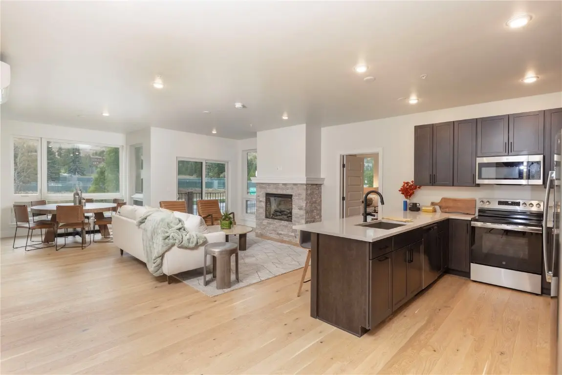 Move in right away to this new construction condominium, enjoy the rest of the summer and get ready for a great ski season. Air conditioning system included as well as upgraded hardwood flooring in the primary bedroom. Brightwood at Keystone, the area's newest development and the doorstep to adventure during all seasons. Adjoining Keystone Lodge & Spa, steps from Keystone Lake and the Snake River, and just minutes from the lifts, this top floor corner 3-bedroom on 2 levels features vaulted ceilings from the upstairs primary bedroom. From the team that brought you Clearwater Lofts this development features underground parking, 5'x9' storage units, ski lockers, in-floor heat, EV charging, air conditioning, access to The Lodge and Spa amenities, high end finishes, big views, and more. No transfer tax or resort fee and the dues cover everything except property taxes and personal insurance.