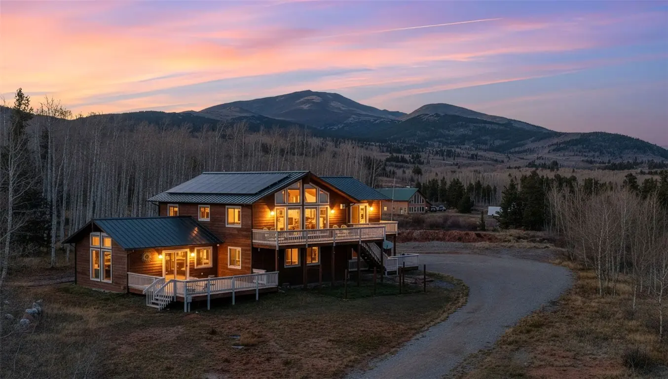 Experience complete privacy and serenity at this stunning mountain estate on eight wooded acres in the exclusive Silverheels Ranch subdivision. This home blends luxury and livability with an open-concept design centered around a gourmet kitchen featuring an induction range and vaulted ceilings that offer expansive views to the south. The large upper deck invites outdoor living—perfect for entertaining, wildlife viewing, or stargazing under Colorado skies. Enjoy the convenience of cable internet for remote work and a large garage ideal for vehicles and your mountain gear. Step outside to explore forested trails, cast a line in the nearby fishing pond, or ride horses straight from the neighborhood. Recent upgrades include a remodel with new kitchen, flooring, and paint, plus energy-efficiency enhancements, new roof and gutters, septic system, well pump, boiler, water heater, and solar / emergency generator. This home has had the full overhaul and is move in ready. With 4 bedrooms, 4 bathrooms (including steam shower), and a vaulted bonus room perfect for a family room, office, or game area, this property offers the ideal balance of mountain luxury, privacy, and practicality. Looking for more storage? There is ample scope to build a barn to compliment your mountain lifestyle.