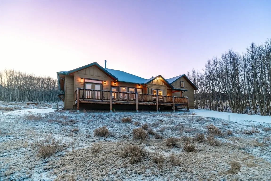 No detail in this home has been overlooked. From the covered front porch to the open floorplan, the high end finishes, the bright and airy feel to the home, this is a unique mountain cabin. The charming front porch opens to a mud room with two closets and a laundry room. The open floorplan living space has a well appointed kitchen with granite counters, a double oven, a kitchen island with seating, and luxurious, floor to ceiling, dark wood cabinetry. A dining area is off to the side. The living space is large and open with a double sided gas log fireplace. The partially covered deck that spans the length of the house has two entrances into the living space where the wall of windows ensures that you can appreciate the views from anywhere. This would be a lovely place to entertain and spend time with family and friends. Two bedrooms with exquisitely finished private baths complete the main level. The primary suite has a bedroom with a lovely sitting room with deck access. The spacious primary bath has a spa shower, walk in closet, and a water closet. The second bedroom on the main level is also has a bathroom with a walk in closet. Upstairs, the third bedroom also has a sitting area, a balcony, and a full bath. You will always feel like you are on vacation in this home. 3.25 acres of gentle rolling hill surrounded by Aspen. Imagine the fall color. Massive snow cap views complete the idyllic Mountain setting. All of this is situated on a quiet road in Elkhorn Ranches, not far off of CR 15 for easy access on County maintained roads. An oversized, finished, two car garage will easily protect your vehicles and all your mountain toys. Whether you are looking for a full time Mountain home, a vacation getaway, or a short term rental prospect, this cabin will deliver.