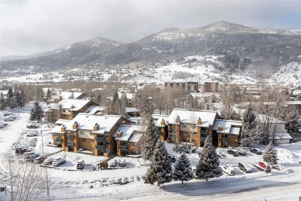 Ideally located between downtown and the ski mountain, this condo at The Pines offers convenience, flexibility, and a desirable central setting. Situated within the heart of the community, the building is just a short walk to dining and everyday amenities, with the free city bus nearby for easy access to both downtown and the ski area. Located in the Green Zone allowing short-term rentals, the property is well suited for full-time living, second-home use, or investment. The building offers ample open parking and has been updated with exterior paint and a new roof within the past five years. The unit features recently upgraded appliances, granite countertops, new carpet, and fresh interior paint. Vaulted ceilings and ceiling fans enhance the open living area, highlighted by a floor-to-ceiling stone gas fireplace. The layout includes two bedrooms, two bathrooms, and a loft that can be used as a home office, additional bedroom, or flexible living space. A full laundry room with built-in shelving and two spacious storage areas provide add valuable functionality.